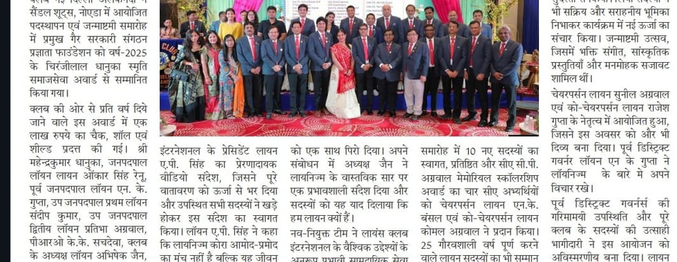 We are delighted to share that the Installation Ceremony of Lions Club New Delhi Alaknanda (LCNDA) has been covered in digital media.